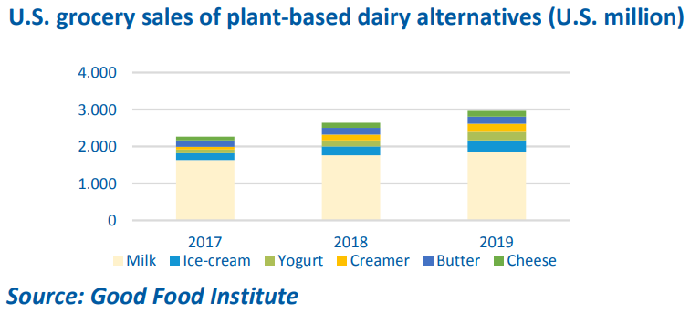 A new category of lab-based alternatives purportedly mimics dairy products more closely. These new technologies replicate milk by using yeast to produce dairy proteins and enzymes. Startup Perfect Day, which is making synthetic dairy ingredients, has raised $61 million (U.S.) and counts grain-trading giant ADM as a key investor. While these synthetic alternatives have yet to be commercialized, some consumers have been willing to try labbased meat products. The expansion of dairy alternatives is part of a wider trend of consumer adoption of substitutes for all animal-based products. Consumers who perceive plant-based products as healthier and more environmentally sustainable and/or who have concerns over animal welfare, along with marketers and activists are driving this trend.