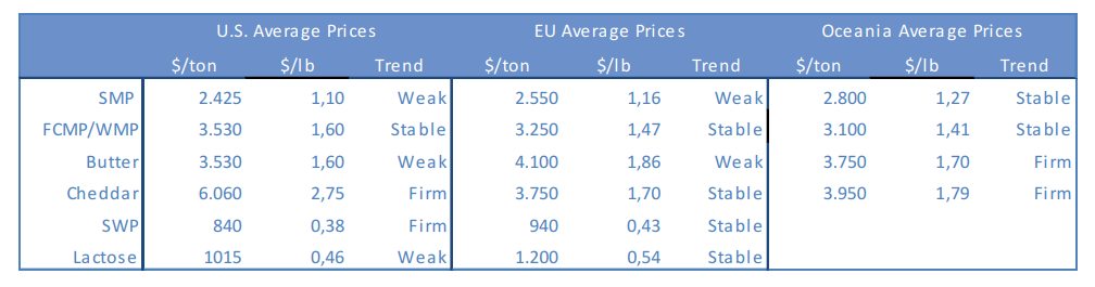 Weather is expected to have a mixed impact on milk output in the coming year. A La Niña system could present challenges to summer output in New Zealand and Argentina, and also negatively impact feed crops in the southwestern United States.